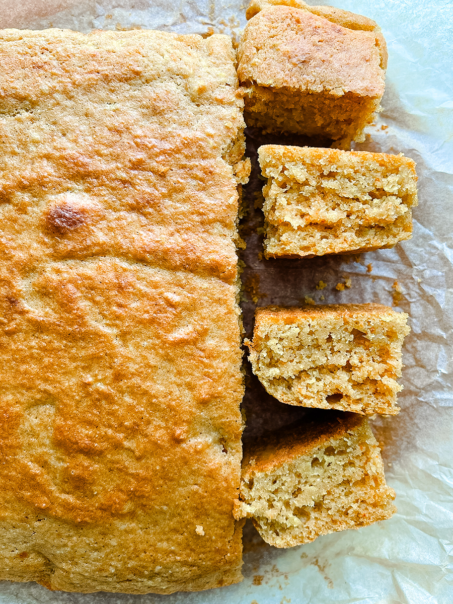 Pour the batter into the prepared pan and bake for 30 minutes, until the cake springs back when you lightly press your finger in it.