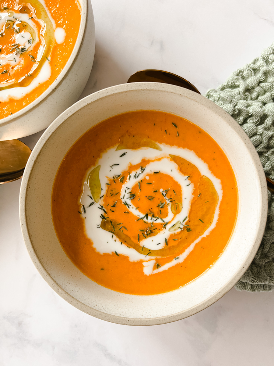 Made creamy with coconut milk, this silky smooth soup is the grown-up, better-for-you version of the canned soup we all grew up with. The coconut adds subtle flavor to make it interesting (but not overwhelming). Pair with your favorite toasted sandwich for the ultimate meal to take you back to your childhood.