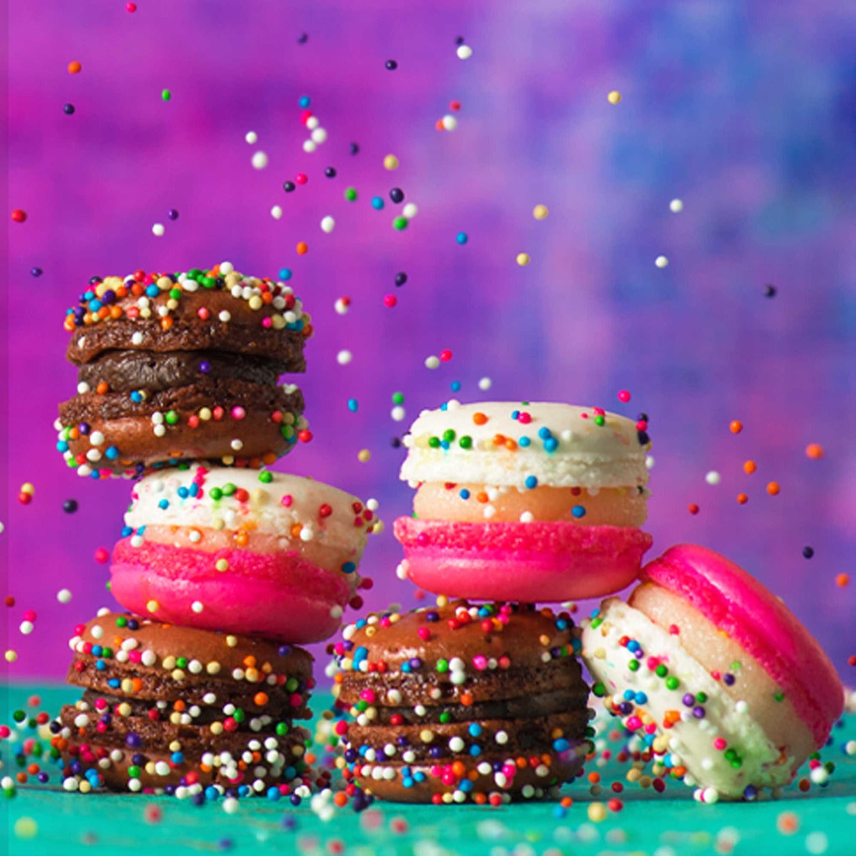 Double Chocolate and Sugar Cookie macarons come together in this 25-Pack of handcrafted, party-perfect treats.