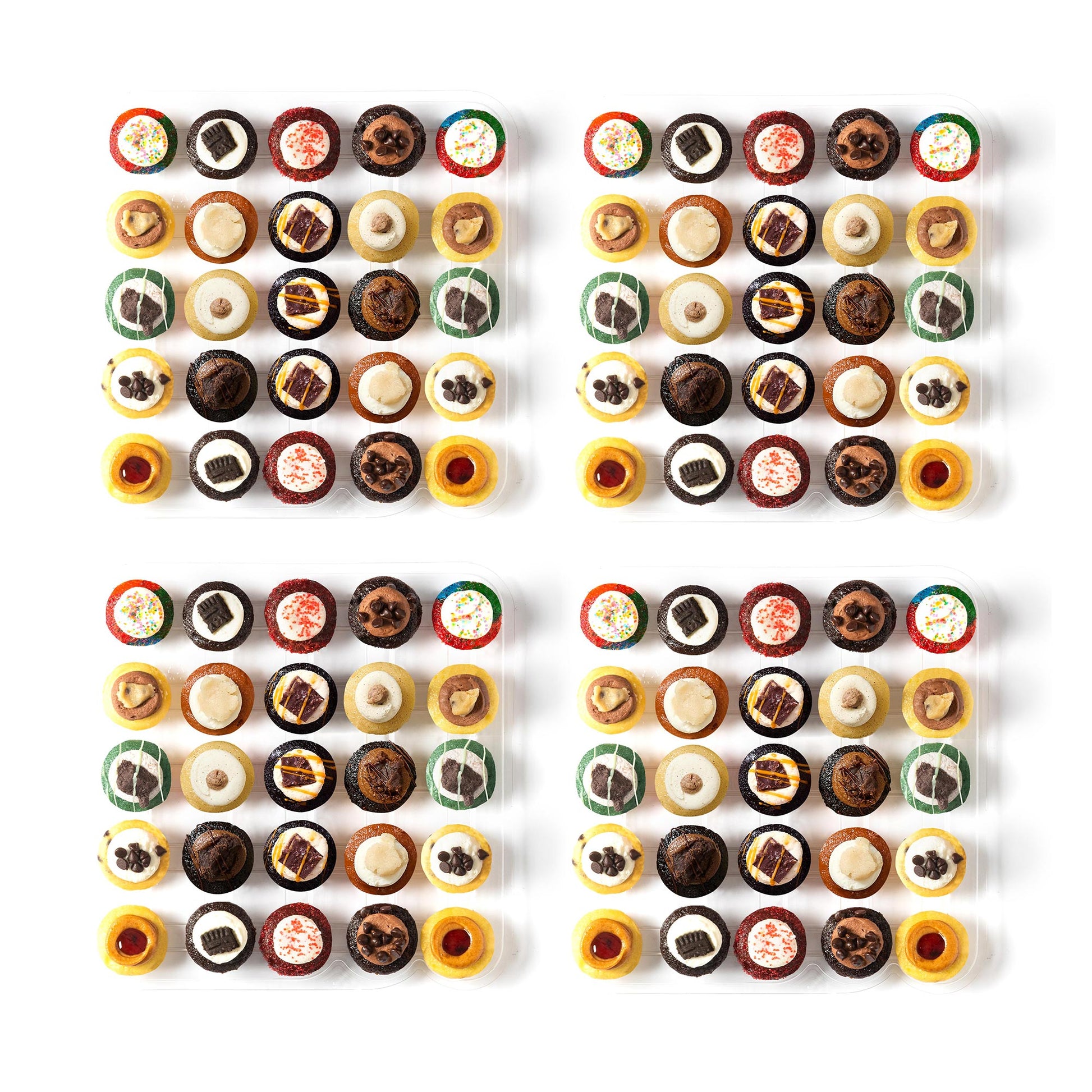 A 100 bite-size cupcake sampler of 12 unique, hand-crafted cupcake flavors. Our most-loved originals, the ever-changing delicious Mini of the Month, and new seasonal flavors. The perfect party pack for your next celebration!
