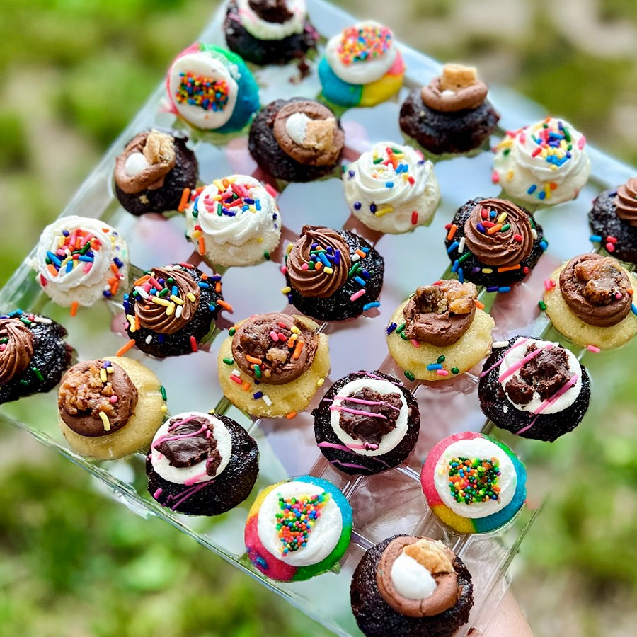 Our bite-size treats are packaged in custom-made, clamshell-like packs that stay safe & fresh for up to 2 weeks when stored in the freezer, and up to 48 hours room temp when stored in the closed pack. Everything ships fresh & sealed from our bakery to your door, anywhere in the US.
