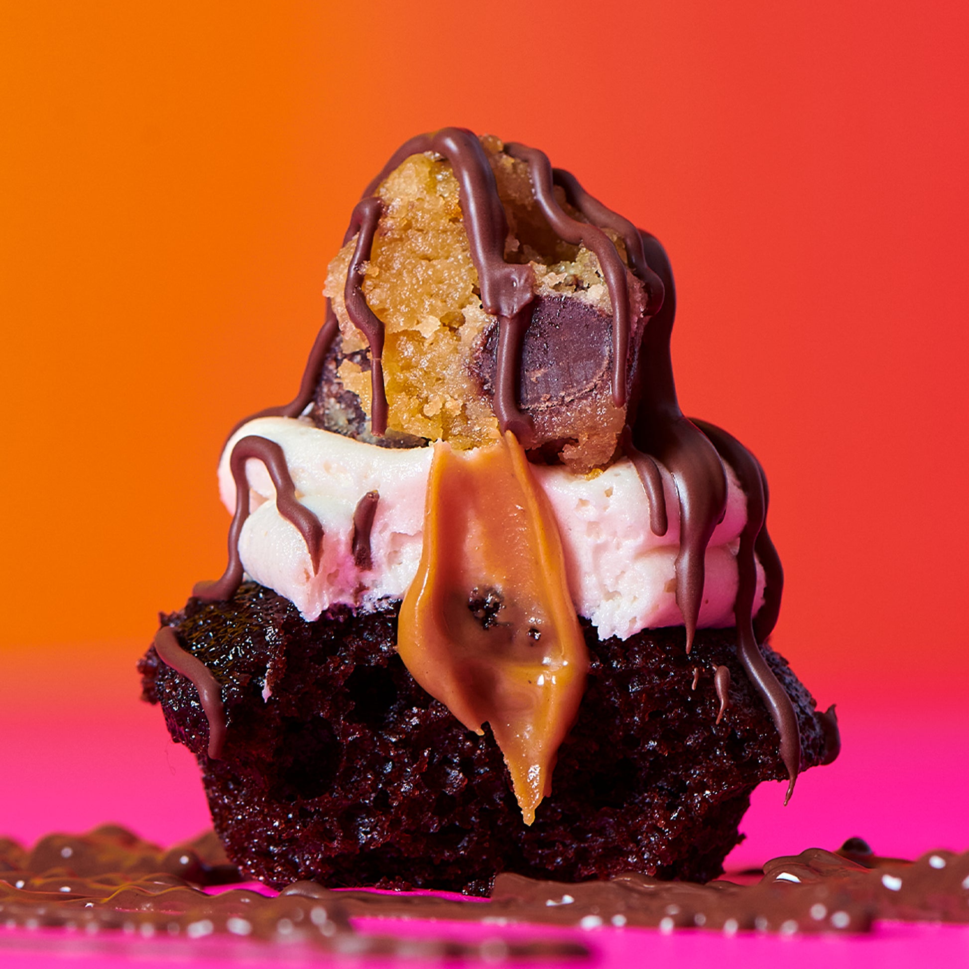 CHOCOLATE RED VELVET CRUNCH CUPCAKE