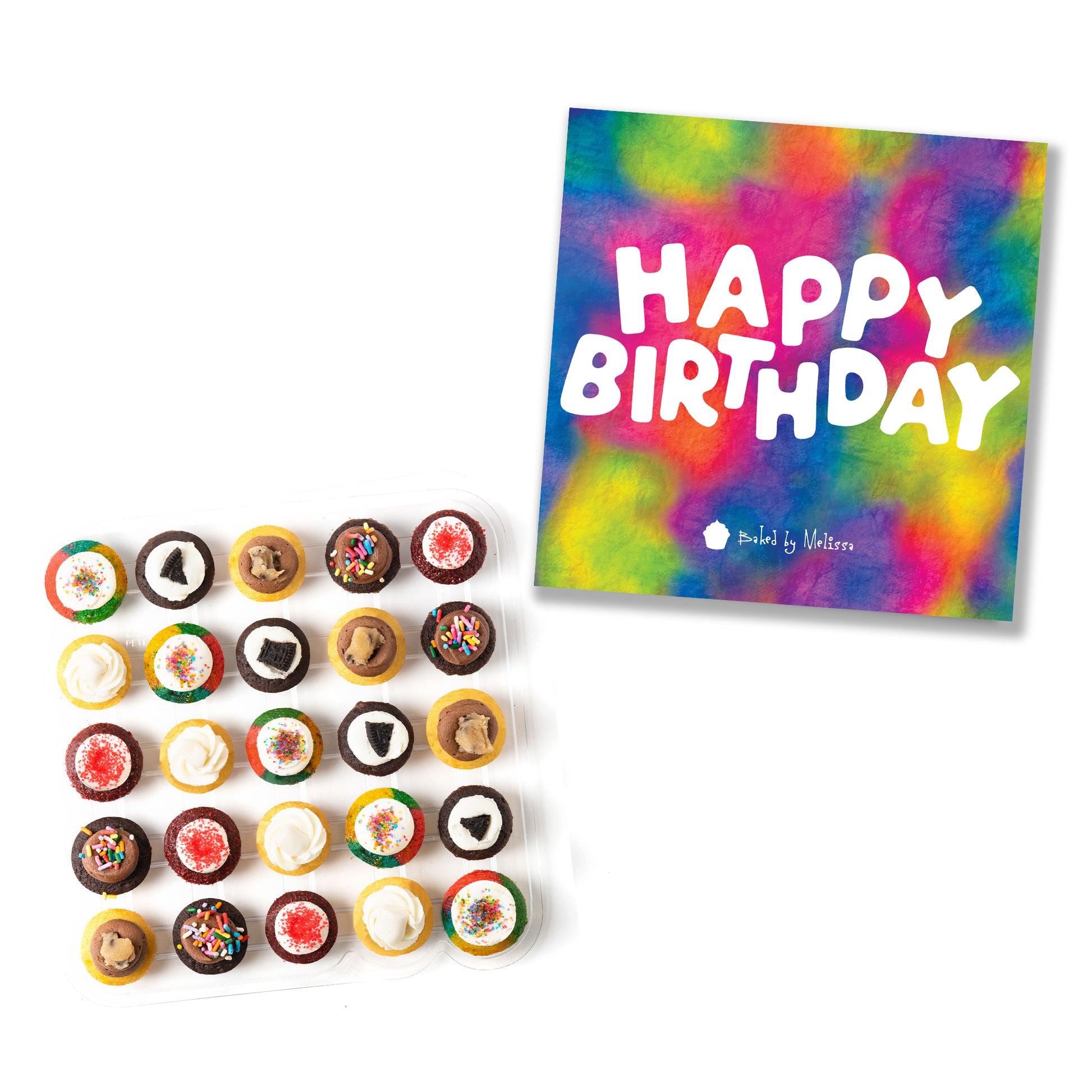 Celebrate gluten-free friends with a Happy Birthday gift box filled with handcrafted cupcakes or double-stuffed macarons.