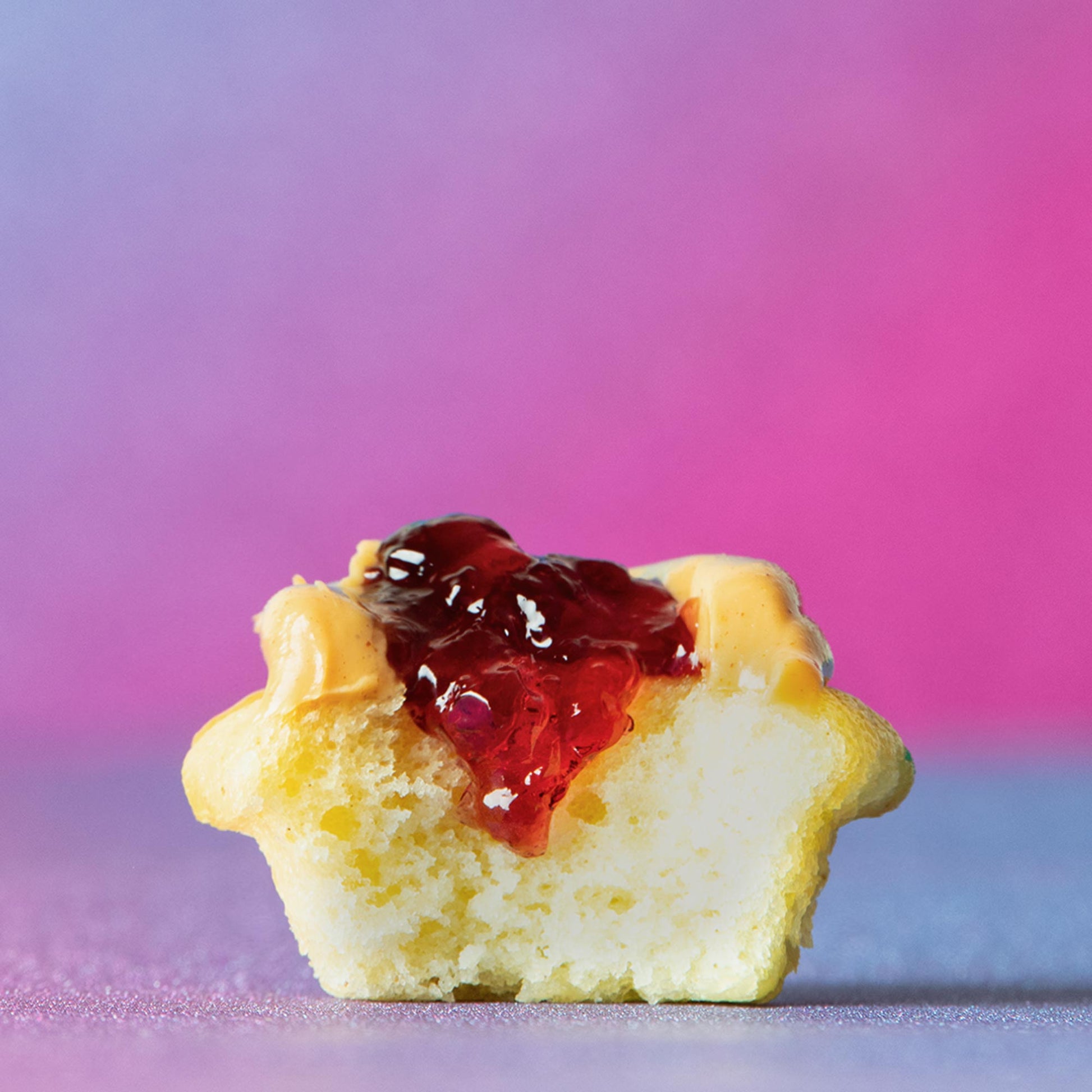 Yellow Cake, stuffed with Grape Jelly and topped with Peanut Butter. Made with Peanut Butter.