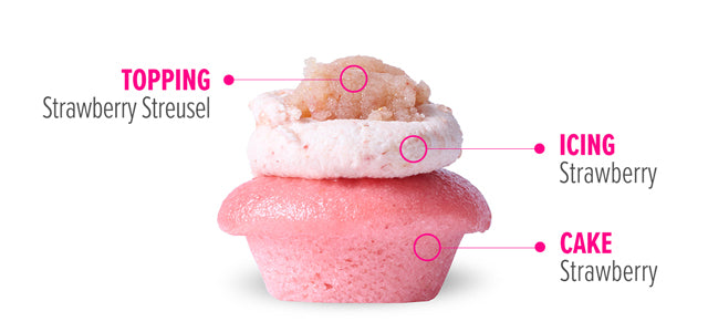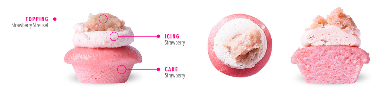 Strawberry Cake, topped with strawberry icing and strawberry streusel.
